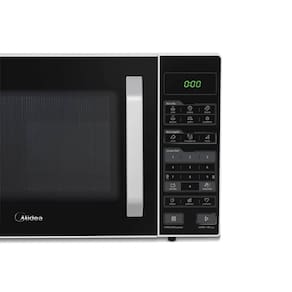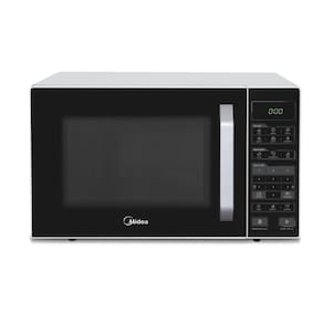 Micro-ondas Midea 35L com funções Tira Odor, Limpa Fácil e Eco, painel digital com display LED verde, 10 níveis de potência, menu descongelar e receitas pré-programadas.Função Grill