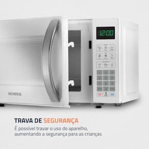Micro-ondas com 21 litros de capacidade, 1200W de potência, 10 níveis de potência, função descongelar, função manter aquecido, menu dia a dia, menu kids, função tira odor e trava de segurança.Função Grill