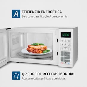 A Linha Micro-ondas MO-02-34-W é um lançamento Mondial e vai trazer mais inovação e beleza para a sua cozinha. Este modelo tem capacidade de 34 Litros, um espaço interno grande o suficiente para atender toda a família. É ótimo para preparar alimentos em pratos, recipientes e refratários. Tem funções de uso frequente, como Menu Dia a Dia e Menu Kids, além de funções que deixam a vida mais prática, como o botão +30 Segundos, Manter Aquecido, Descongelar e Tira Odor. Com uma potência de 1400w e 10 ajustes, o Micro-ondas da Mondial é versátil e prático, perfeito para a sua rotina. Aproveite a qualidade que só a Mondial oferece!