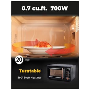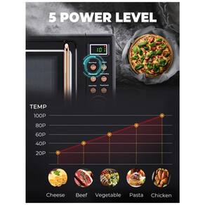 8 conjuntos de cozimento automático para aquecer alimentos comuns como pipocas, bebidas, pizza, carne etc. Corpo de economia de espaço com dimensão geral de 45cm x 35cm x 25cm (C x L x A). Design amigável ao usuário com luz interior, botão de tempo, peso, mostradores e maçaneta.Função Grill