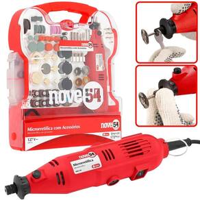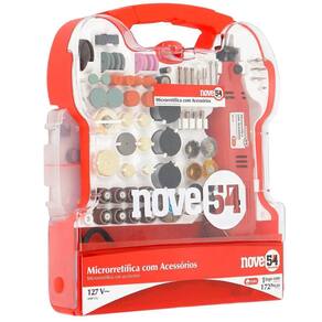 Micro Retífica 130W Completa com 172 Acessórios Nove54 Micro Retífica de extrema durabilidade de materiais e ótima performance. Com sistema de velocidade variável que permite ao consumidor regular a velocidade de acordo com o tipo de trabalho a ser efetuado. - Marca: Nove54 - Modelo: AMR172 - Potência: 130W - Frequência: 60Hz - Rotação: 8.000 - 30.000rpm - Diâmetro da pinça: 3,1mm - 1/8 - Perfeita para trabalhos artesanais - Versátil e prática de usar - Permite a realização de inúmeras atividades utilizando os acessórios que acompanham a micro retífica - Dimensões da Embalagem: 28 x 23 x 6 cm - Peso: 2.7kg - : 90 dias Itens inclusos: - 1 abrasivo - 1 Chave para micro retífica - 4 Cilindros de feltro - 74 Discos de corte - 10 Discos de lixa - 1 Escova circular de inox com haste - 1 Escova circular de latão com haste - 1 Escova circular de nylon com haste - 2 Escovas pincéis inox com haste - 1 Escova pincel latão com haste - 1 Escova pincel nylon com haste - 2 Hastes para disco de corte - 1 Haste para disco de feltro - 2 Hastes para lixa cilindro - 1 Haste para roda de pano - 7 Limas rotativas - 3 Limas rotativas diamantadas - 30 Lixas cilindro - 1 Pasta para polimento - 4 Pinças para micro retífica - 1 Ponta com feltro - 10 Pontas montadas - 4 Rebolos de carbureto de silício - 4 Rebolos de óxido de alumínio - 1 Roda de borracha - 1 Roda de feltro - 1 Roda de lixa - 1 Roda de pano