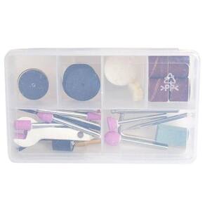 ITENS QUE ACOMPANHAM: - 01 Punho Auxiliar Dianteiro - 01 Eixo flexível - 01 Chave hexagonal - 10 Pontas montadas para desbastar (haste de 2,95 mm) - 01 Suporte de borracha para lixas (haste de 3,10 mm) - 02 Pontas diamantada (haste de 3,10 mm) - 01 Haste para fixação do disco de corte (haste de 3,10 mm) - 01 Haste para fixação de disco de lã (haste de 3,10 mm) - 04 Tubo de Lixa - 03 Lixa - 08 Disco de Corte - 04 Disco de lã para polimento - 01 Pedra de amolar - 02 Pinça (3.2mm, 2.3mm) - 02 Broca HSS (3.2mm, 2.3mm) - 01 Chave