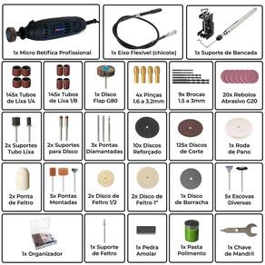 Micro Retífica Profissional Chicote Suporte 500 Peças - 220V