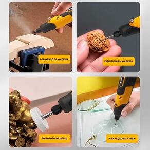 Compacta, leve e sem fio, ela foi desenvolvida para trabalhos de precisão em diferentes materiais, permitindo realizar cortes, lixamentos, gravações e polimentos com controle e eficiência.