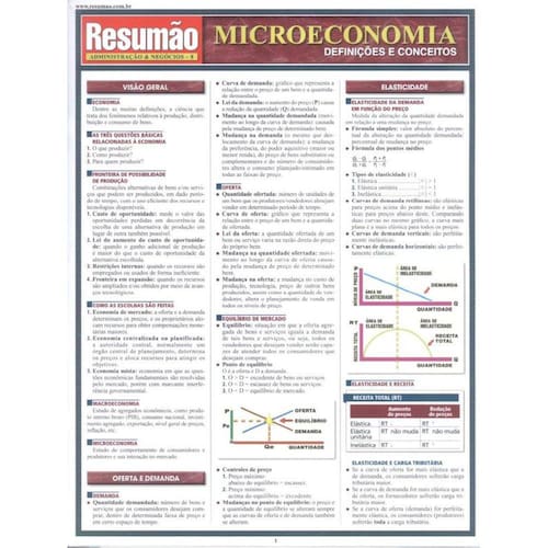 Resumão Microeconomia Apresenta Os Seguintes Temas Visão Geral Da Microeconomia Oferta E Demanda Equilíbrio De Mercado Elasticidade Elasticidade Da Demanda Elasticidade E Receita Teoria Da Utilidade Custos De Produção Competição Perfeita Características Maximização De Lucros Competição E Eficiência Monopólio Características Maximização De Lucros Monopólio E Eficiência Discriminação De Preços Competição Monopolística Oligopólio Recursos E Mercados Demanda De Recursos E Oferta De Mão De Obra Determinação De Salários Externalidades Comércio Internacional