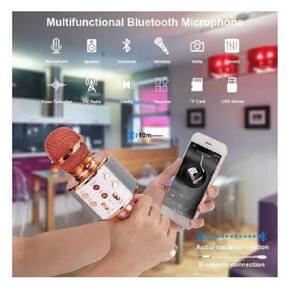 Desejamos a todos os clientes uma ótima compra Tenha uma karaokê a qualquer hora em qualquer lugar. Possui bluetooth, conecte com seu celular ou tablet e se divirta cantando suas músicas favoritas. Modelo totalmente inovador com controle de mixer embutido para controlar melhor o som. Tem ajuste de volume e de eco para dar um efeito melhor para voz. Conecte também via cabo p2 reproduzindo direto no microfone como uma caixa de som Descrição: Cor: prata Microfone com amplificador de voz embutido Controle de mixer Conecta com celular / tablet via bluetooth Potência de 6w (3wx2) Totalmente portátil Bateria interna recarregável Especificação: Recarregável Ajuste de eco Ajuste de batida Ajuste de volume Bluetooth 3.0 Potência de saída: 3wx2 Faixa de frequência: 100hz-10 khz Bateria: 2600 mah Peso do produto: 208g Tamanho: 24cm x 7cm Tensão de carregamento: dc 5 v Sensibilidade: -65db Itens inclusos: 1x microfone bluetooth 1x cabo usb