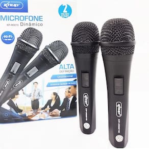Microfone com fio Duplo profissional modelo KP-M0015 Guia de operação - Insira plug do microfone na entrada"mic" - Coloque o microfone na posição "ON" ligar o aparelho. - Coloque o microfone na posição "OFF" não quando for utilizar o aparelho. Cuidados - Mantenha o microfone longe do alto falante. - Não bata no microfone. Evite danificar as partes do microfone - Não expor o microfone a altas temperaturas e lugares com alta unidade Instruções: - Para evitar ruídos mantenha o microfone de 5-10 cm de distância para melhor qualidade de captação Características: - Microfone dinâmico - Unidirecional - Excelente captação de áudio - Reprodução de voz clara e nítida - Ideal para karaokê, amplificadores e aplicações de áudio em geral - Chave Liga/ Desliga - Conector P10 6.35mm - Comprimento do cabo: 3 Metros 2- Microfones 2- Cabos Saída P10 Garantia 3 Meses Ean: 7898652415999
