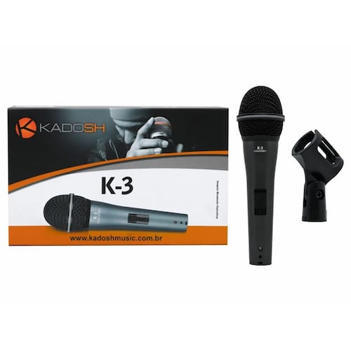 O microfone K-3 da Kadosh Music é um microfone cardioide para uso geral. Oferece ótima qualidade e um preço acessível. Projetado para uso em vocal, onde você terá apenas que soltar a voz e deixar o microfone K-3 fazer o resto. Cápsula projetada para suportar altos níveis de pressão sonora, o K-3 lhe proporcionará uma qualidade única. Corpo produzido em metal, cápsula com sistema anti-choque e chave on/off silenciosa. Acompanha cachimbo.