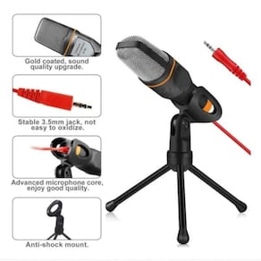 Microfone Condensador C/ Tripé P/ Gravação Profissional, Podcast, Videochamadas Este Microfone é o ideal para a sua sala de conferências, internet, bate-papo, Podcasts, Youtubers e passatempo do usuário. Distribuição de música e aplicativos de mensagens. Sua ampla resposta de frequência e alta potência pode fazer performances vocais de som claro e vibrante, ele ainda é um produto Portátil você pode carrega-lo em sua mochila, bolsa e etc. Características: - Cor: Preto - Corpo do Material: Metal + ABS + PVC fio - Suporte Material: ABS - Direção: omnidirecional - Baixo nível de ruído - Plugue: 3,5 mm - Sensibilidade: -30dB 3dB Aplicação: Cantar, gravação em rede, chat on-line, conferência de vídeo online, jogos online, etc. Especificações: - Tensão de funcionamento: 1.5V - Padrão Tensão de funcionamento: 1.5V - Resposta de frequência:50Hz-16KHz Tamanho do Microfone: - Altura: 13cm - Largura: 4cm - Comprimento:14cm Tamanho do Cabo: Comprimento: 176cm Tamanho do Tripé: 20 de comprimento Código: 079501 Dimensões aprox. da embalagem em cm: 6x15x28 Peso liq. Aproximado do produto na embalagem: 182g Referência do Modelo: KAP-SF666 Conteúdo da Embalagem: - Microfone condensador (com cabo), Tripé Composição/material: Plástico, ABS e componentes eletrônicos Garantia: 90 dias contra defeitos de fabricação pelo fabricante Imagens meramente ilustrativas. As cores e tonalidades podem variar. Tipos de Fones de Ouvido - Com Microfone Ean: 6951129800399