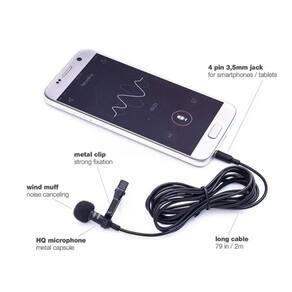 ste Microfono contém um clipe de suporte para ajudar a obter um som claro.Microfono con función anti-ruido.Viento escudo mejora la calidad de sonido por la prevención del ruido.el 3.5 mm tipo jack puede conectar a PC/laptop/transmisor de microfone sem fio con 3,5 mm de entrada de linha/microfone en.clip incorporado se puede conectar facilmente a los collares, lazos u otra ropa-no requer instalação.Especificações:Tipo: Microfonolongitud del cable: Aprox. 150 cm Sensibilidad: -46±2dB Diretividad: UnidireccionalVoltaje De la operación: DC1.0V-10 VR Rango De frequência: 50-16,000 Hz Cor: Preto