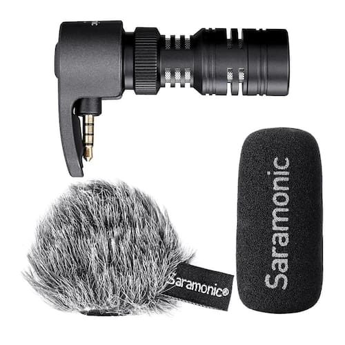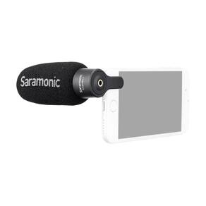 Microfone Condensador Direcional Saramonic SMARTMIC+ ultraleve e compacto que se conecta diretamente ao conector de fone de ouvido em smartphones e tablets o SmartMic+ melhorar consideravelmente a qualidade do som dos vídeos que você captura. O padrão de captação direcional se destaca ao focar nos sons à sua frente, enquanto rejeita sons para os lados e para trás. Produzir áudio nítido e claro, mesmo em ambientes movimentados.
