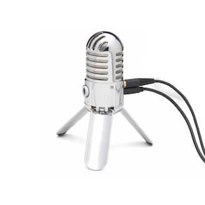 Microfone Condensador Samson Meteor Cardióide Para Voz Com Interface USB Integrada Microfone Condensador Samson Meteor Cardióide Para Voz Com Interface USB IntegradaMeteor USB Microfone condensador USB Samson Meteor com diafragma grande, cor cromada, padrão polar cardioide, saída P2 para fones de ouvido e resolução 16-bits/48kHz. Compatível com iPad e iPhone.O Samson Meteor é um microfone de estúdio condensador USB portátil, perfeito para gravar diretamente no seu computador. Ideal para home studio, o microfone Meteor USB atende tranquilamente gravações musicais, podcasts, streaming e até mesmo para melhorar sua comunicação no Skype ou em jogos online. Tudo isso com uma qualidade fora de órbita. Áudio Sólido Capaz de produzir gravações de áudio ricas independente da aplicação, o Samson Meteor conta com uma cápsula única dedicada de 1 (25mm) grande o suficiente para oferecer uma resposta de frequência ampla e suave que captura todas as nuances da sua voz ou até mesmo a performance de um instrumento. Seu padrão de captação cardioide grava sons que estão diretamente na frente do microfone, ignorando ao máximo qualquer barulho que esteja fora do eixo sonoro desejado. Fazendo a Mágica O mais impressionante é que o Meteor faz tudo isso sem precisar de nenhum driver. É só ligar no computador ou qualquer dispositivo compatível e sair usando imediatamente. Mais do que isso, o Samson Meteor é compatível com a grande maioria dos softwares de gravação, produção musical, programas de VOIP, videoconferência e DAWs no geral. E para fazer tudo isso com qualidade profissional, o Meteor USB alcança uma resolução de 16 bits em 44,1kHz / 48 kHz, não importa o que você esteja gravando. Características O Queridinho para Podcasts O Samson Meteor é projetado para permitir que você soe o melhor possível onde quer que seus projetos o levem. O design com tripé recolhível permite que o Meteor seja facilmente transportado para qualquer lugar, mas também para permitir que o microfone possa ser perfeitamente posicionado sempre que você estiver pronto para gravar. A conexão para stands integrada na parte inferior do microfone permite ainda que ele seja montado em qualquer pedestal, tripé ou braço articulado de mesa para ficar na altura ideal para você. Especificações Técnicas Respostade frequência: 20Hz - 20kHz Sensibilidades pl: 120dB Acessórios inclusos: CABO Alimentação: USB Conector plug: USB Extensão do cabo: 15CM Inclui cabo: SIM Padrão polar: CARDIOIDE Quantidade de microfones: 1 Tamanho do diafragma: 1 (25.4mm) Cores: PRATEADO Modelo: Meteor; Cor: Cromado; Microfone condensador USB com diafragma grande de 25mm; Conecta diretamente com qualquer computador com uma entrada USB, sem necessidade de drivers; Compatível com todos os principais softwares do mercado; Padrão polar cardioide (direcional); Resolução 16-Bits, 44.1khz/48khz; Resposta de frequência flat: 20Hz - 20kHz; SPL máximo: 120dB; THD: 0,01% ou 0,04% em 32 ohms; Saída P2 para headphone com latência zero; Impedância da saída para fone de ouvido: 16 ohms; Controle de volume e botão de mudo; Pernas do tripé dobráveis para otimização do espaço e facilidade no transporte; Compatível com smartphones e tablets; Corpo cromado resistente; LED com 3 cores indicando ligado, mudo e pico; Peso: 300g; Acompanha cabo USB e bag de transporte; Alimentado por USB (via PC ou smartphone Android).
