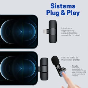 O Microfone Lapela Sem Fio Tipo C é a qualidade e praticidade que você precisa para suas reuniões, Lives, Streamings, Vídeos, Chamadas e muito mais!