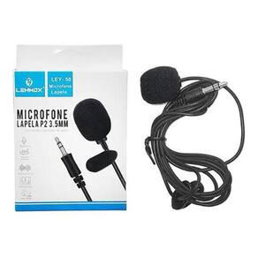 Microfone de Lapela Lehmox LEY-205 Descriçao: Equipamento indispensável para quem pretende gravar audios de qualidade. Útil para home office, Homeschooling, hobby, Youtuber, entre outras funções conforme a necessidade do usuário. Especificações:Faixa de freqência: 20 Hz-16 KHzSensibilidade:-30db +/-2dB RL = 2,2 K ohm Vs = 3 VPlugue: P2 3,5 mmComprimento do cabo: Aprox. 1,50cm Garantia:3 Meses de garantia já inclusa a garantia legal, Art. 26, CDC Imagens meramente ilustrativas