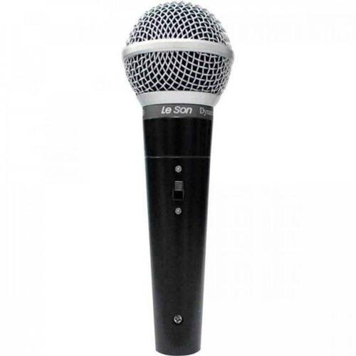 Microfone De Mao Dinamico Ls50 Preto Leson - Corpo e globo metálico com pintura de alta resistência - Cápsula com imã de neodimio - Fase: Pressão positiva no diafragma produz uma tensão positiva no pino 2 em relação ao pino 3 Cód.Fabricante:62144338298 Cor: Preto Tipo: Dinâmico Directividade: Cardióide (Unidirecional) Impedância: 600 Ohms Resposta Frequência: 70Hz ~ 13KHz Sensibilidade: 1,6mV/Pa (-50dBV) Cabo: 5m (Coaxial) Conector: P10 (6,3mm) / XLR 3F (3 Pinos) Peso: 250g Chave ON/OFF: Sim