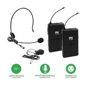 Com o microfone sem fio Px-1000a, você tem a melhor experiência em som profissional. Com 2 microfones Sem fio tipo , frequências individuais com alcance de até 60 metros, Fácil instalação e controles de volume individuais por canal, essa é a opção Ideal para apresentações, cultos, karaokês, palestras e eventos. Uhf compacto com 2 microfones lapela / headset e controles de volume individuais. - alta relação sinal-ruído - distorção super baixa - amplo alcance: até 60 metros em circunstâncias ideais, 15 metros de raio em condições normais. Microfone/transmissor - potência do transmissor: 30mw - emissão de espúrios: 40db - display: led - voltagem de bateria 1.5v x 2 - vida útil da bateria: até 8 horas - anatel: 16222-20-13478 Atenção: Não utilizar mais de 1 microfone modelo e frequência no mesmo ambiente, pois dará interferência no sinal. Especificações técnicas: Microfone sem fio e 2 microfones de headset/ lapela 595,10 632,10 mhz Homologação Anatel: 110052213346 Marca: Não Informado