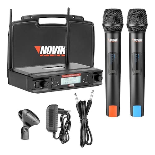 O unk-660 da marca novik é um sistema com dois microfones que trabalham na frequência uhf, com frequência variável, sendo o equipamento de transmissão de áudio ideal para eventos e locais de pequeno porte, como instalações em igrejas, salas de conferências, palestras, salas de aulas e espaço para apresentações ao vivo.