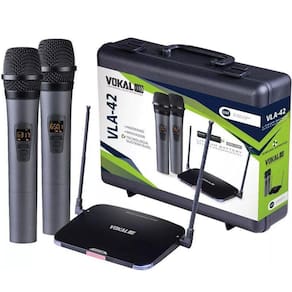 Método de programação: DQPSK; Estabilidade de frequência: 3bpm; Resposta de frequência: 40-20khz; Distância de transmissão: 40-80 mts (sem obstáculos); Tensão de trabalho: 100-240 VAC 50-60Hz (fonte de alimentação); Faixa de frequência de sinal: 500-980mHz; 2 canais com 16 frequências (total de 32 frequências diferentes); Display com indicador de frequência; Largura de banda: 2.5 mHz; 2 Saídas P2 (1/8); 2 Cabos P2 + P10 ;