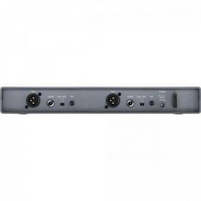 EM-XSW1 DUAL: ? Sensibilidade (com desvio máximo):< 3 V com 52 dB(A)eff S/N ? Intervalo de transmissão de som: 50 a 16000 Hz (?3 dB) ? Tensão de saída de som má desvio máximo, 1 kHz ): Conector jack fêmea de 6,3 mm (não balanceado): +6 dBu ? Conector XLR fêmea (balanceado): +12 dBu ? Intervalo de ajuste de som: 45 dB, ajustável em intervalos de 5 dB ? Alimentação de tensão: 12 V nom./500 mA ? Volume Line/Mic: 20 dB comutável ? Material da carcaça: Carcaça ABS robusta ? Dimensões (L x A x P): Aprox. 320 x 42 x 127 mm ? Peso Aprox. 610 g