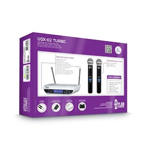Microfone sem fio Duplo Dylan UDX-02 Turbo sem fio UHF duplo de mão com Receptor com painel digital