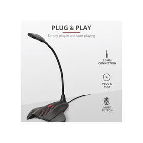 Marca: trust Modelo: gxt 239 Microfone gamer trust gxt 239 nepa 1.7 metros Microfone para jogos com pescoço flexível; para bate-papos de voz enquanto joga Pequeno em tamanho e preço, mas grande em funcionalidade e estilo, o microfone de jogo analógico nepa é um gadget de mesa muito útil. Alguns pequenos detalhes de design convenientes tornam a gravação ou o bate-papo por voz muito fácil Caracteristicas do produto: - pescoço de microfone flexível - botão mudo facilmente acessível - ideal para usar com twitch, youtube ou chats de voz durante o jogo - base antiderrapante grande para estabilidade - cabo de 1,7 m com conexão de microfone de 3,5 mm