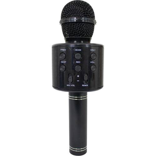 Microfone infantil bluetooth para karaokê spring kids spk015 preto Descrição: O microfone karaokê spk-015 conta com uma caixa de som embutida, além de poder sincronizar seu celular ou notebook via bluetooth e reproduzir um playback. Função bluetooth Função mp3 Bateria de longa duração Efeitos de voz Entrada usb Entrada para cartão sd Gravação e reprodução Potência de saída: 5v Nível máximo de pressão sonora: 115db 1khz tdh Homologação Inmetro: IP-BRI-0169/2022-01