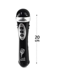Brinquedo leve, o microfone musical emite diversas músicas e acende luz, funciona com 2 pilhas AA não inclusas . O brinquedo não emite a voz da criança, somente possui sons próprios do microfone.
