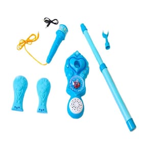 Com um visual super moderno e divertido este microfone vem com alto falante acoplado, acende luzes na base que dão aquele clima e também pode ser conectado ao celular para cantar acompanhando músicas ou fazer gravação, vem com mais de 10 músicas para a criançada se divertir muito e cantar juntos,