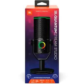 Microfone JBL Quantum Stream Studio Com Fio O Microfone JBL Quantum Stream Studio é a melhor opção para quem procura qualidade na captação de áudio para podcasts, lives e muito mais! Ele conta com diversos recursos tecnológicos que irão elevar seu áudio para o nível profissional. Confira mais detalhes: