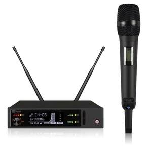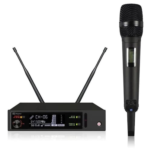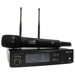 Microfone único sem fio UHF destinado ao uso em médios e grandes eventos para locução e canto. Capacidade de operação de até 8 sistemas do mesmo modelo desde que o usuário atenda as regras de uso do produto Não colocar as bases em cima da outra, não cruzar as antenas de outras bases, dar uma distância mínima necessária de 7 cm de cada base, fazer coordenação de frequências aconselha-se 6Mhz.