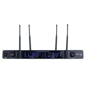 - Banda: UHF - Transmissão de AF digital: 24bit 48KHz - Visor LCD: detalhes de frequência e a condição da bateria - Varredura de frequência automática e função de frequência definida pelo usuário - Adequado para palcos, salões de baile, salas de conferência, palestras e entretenimento doméstico - Distância ideal: 80m em espaço aberto