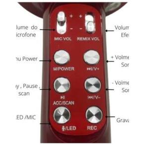 Microfone karaokê bluetooth gravação integrada Microfone sem fio bluetooth karaokê lelong Se você gosta de cantar no chuveiro mas quer começar a treinar sua voz, ou até mesmo ter momentos de pura diversão com os amigos e família, este é o microfone perfeito. Basta carregar a sua bateria interna entrada v8 de carregamento , ligar e sair cantando. Além disso você pode até mesmo gravar o que está cantando e mostrar todo o seu talento pra pessoas. Nosso microfone já é equipado com caixa de som própria, não precisa estar conectado a nenhum outro aparelho para funcionar, mas se quiser conectar em outro auto-falante por exemplo também é possível através de um cabo auxiliar. Tem também a função de alteração de voz, com apenas um click, sua voz pode ficar bem fininha ou bem grossa, ou seja, com o microfone karaokê é diversão garantida em qualquer hora e lugar. Funciona também como uma mini caixa de som. Você pode conectar por bluetooth o seu celular ou qualquer outro aparelho compatível e reproduzir o som. Cante junto com seus artistas preferidos ao mesmo tempo Principais características Bluetooth Modo gravação Rádio fm Entrada cartão sd Entrada usb Entrada fone de ouvido Ajuste de voz Ajuste de volume Aplicativo karaokê Potência de saída: 5w Faixa de frequência: 100hz-10khz Nível máximo sonora: 115db 1khz tdh 1% Capacidade da bateria: 1800mah Fonte de alimentação de carga: dc-5v Itens inclusos 1 microfone karaokê bluetooth com caixa acoplada 1 cabo usb 1 cabo p2 1 manual do usuário ==================================== Dúvidas frequentes - conecta em outras caixas de som Sim através de um cabo auxiliar, que já vem incluso. - o produto é resistente Trabalhamos apenas com produtos com material de altíssima qualidade, durabilidade e procedência. Homologação Anatel: 080281811799 Marca: Não Informado