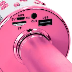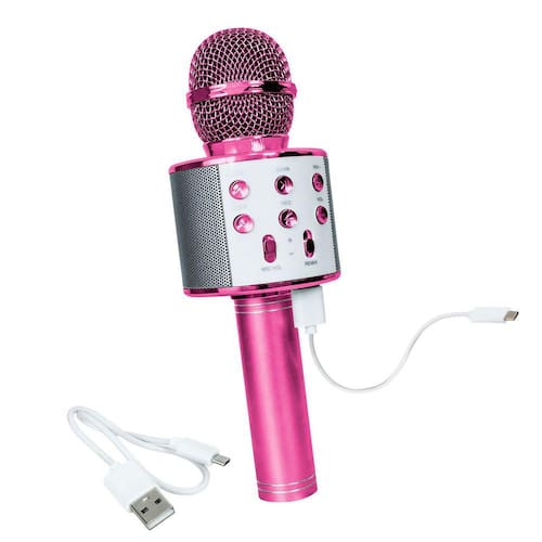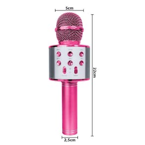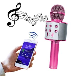 --------------------------------------Informações do Produto:-------------------------------------Microfone Karaoke Bluetooth Sem Fio Liba Reporter RosaCaracterísticas:Microfone bluetooth de alta sensibilidade que vai transformar suas brincadeiras entre amigos mais divertidas.Construído em dois alto-falantes, você pode ouvir e cantar a qualquer hora e em qualquer lugar.Usando o Bluetooth do telefone móvel, para sincronizar com suas músicas prediletas.Função de cancelamento de ruído microfone capacitivo sem fio, você pode desfrutar e cantar suas músicas com praticidade pelo próprio microfone.Especificações: Modelo: WS -858 Material: ABS shell Tamanho do Item: aprox.221 76 76mm Potência de saída: 10mW saída de fone de ouvido Tipo de alimentação de Carregamento: DC5V Faixa de Freqência: 100Hz-10KHz Capacidade da Bateria: 1200mAh Máximo nível de pressão sonora: 115dB 1 kHz THD