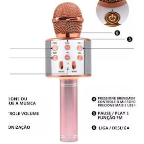 Microfone karaoke bluetooth: sua jornada musical começa aqui e agora Esse microfone é realmente incrível Ele tem caixa de som embutido, não precisa estar conectado a nenhum outro aparelho para funcionar. Possui controle de volume e controle de eco. Tem também a função de alteração de voz, com apenas um click, sua voz pode ficar bem fininha ou bem grossa. É muito divertido Funciona também como uma mini caixa de som. Você pode conectar por bluetooth o seu celular ou qualquer outro aparelho compatível e reproduzir o som. Imagine só, você coloca a sua música preferida para tocar e pode cantar ao mesmo tempo seja um astro cante e brinque a qualquer hora e em qualquer lugar