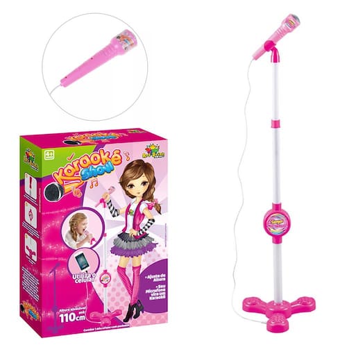 O Microfone Karaokê Show da Art Brink é o brinquedo perfeito para as pequenas que amam música! Com um design encantador na cor rosa, este microfone infantil vem completo com um pedestal ajustável e possui entrada para conectar um celular. As crianças poderão se sentir como verdadeiras estrelas do palco enquanto cantam suas músicas favoritas.