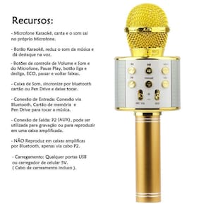 Anúncio referente somente a 01 Microfone Karaokê na cor DOURADO.