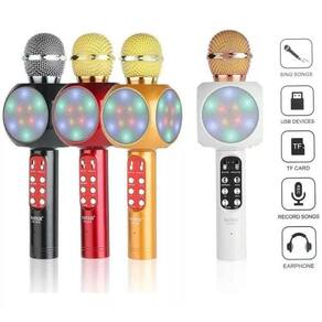 Microfone Karaokê Recarregável Led Bluetooth Vermelho