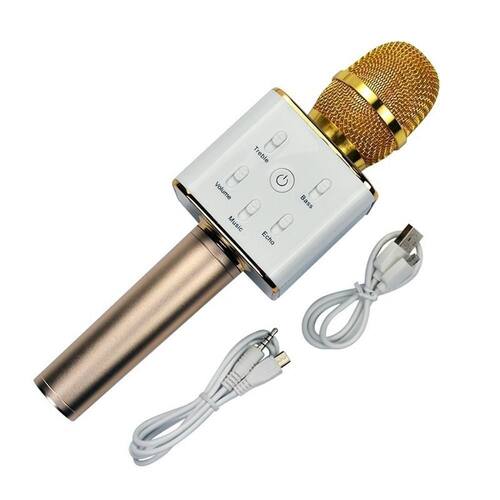 Microfone Karaoke Voice Bluetooth MK-100 Dourado OEX MK100 Microfone Karaoke Voice: Tenha um karaokê a qualquer hora, em qualquer lugar. Este microfone tem um speaker acoplado e conexão Bluetooth versão 4.0 para conectar um celular ou tablet e cantar suas músicas favoritas. -alcance máximo de 10m do dispositivo pareado -potência de 6W RMS -bateria de polímero: 1200mAh -tempo de reprodução de aproximadamente 4 horas -recarga via USB DC 5V/ feito em metal e liga de alumínio -super leve: peso de 500g -Dourado. Peso: 500 g Dimensões do Produto: 10 x 30 x 10 cm Garantia: 3 meses Homologação Anatel: 078531705567 Ean: 7898562618404