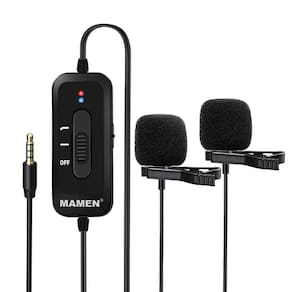 O Microfone de Lapela Duplo Profissional Mamen KM-D2 Pro Bateria Interna para Smartphones, Câmeras e Notebooks é um microfone de lapela omnidirecional duplo, com Interruptor externo com Modo SmartPhone e Modo Câmera Digital, para dispositivo de gravação compatível com diferentes dispositivos de gravação universal com Plug P2 3.5mm e acompanha Adaptador Plug de 6.3mm. um Microfone de Lapela omnidirecional, perfeito para uso em vídeo, projetado para smartphones, DSLR, filmadoras, gravadores de áudio, PC, entre outros. Seu Cabo de 8metros de comprimento, sendo 2 metros do Conector da Câmera ate o Interruptor + 6 metros do Interruptor ao microfones Lapelas.O Microfone Profissional Duplo Lapela Mamen KM-D2 Pro Bateria Interna pode ser amplamente utilizado para gravação de entrevistas, gravação de vídeo, ensino em sala de aula, transmissão Live Streaming, discurso em conferência, apresentação em vídeo etc. Microfone profissional de captura omnidirecional com ampla resposta de frequência e resolução de som de alta definição.O Microfone de Lapela Duplo Profissional possui interruptor de corte de ruído externo ajuda a reduzir o ruído de baixa frequência e o som do vento. Interruptor de alavanca externo para dispositivo de gravação, compatível com diferentes dispositivos de gravação. Bateria recarregável interna de polímero de íon de lítio. Indicador de baixa energia, conheça a condição de serviço da bateria. Design leve, flexível e fácil de configurar e operar.Recolhimento total de 360 graus Cabeça do Lapela comperfuração do capacitor de alta sensibilidade, modo de captação de som omni-direcional de 360 . Nova tecnologia de decodificação de som, timbre de som é mais transparente.Ideal para Smartphones, Câmeras DSLR, Câmeras Digitais dv, Filmadoras, Computador desktop, Notebooks, Laptops, Tablets, Gravadores de Áudio, Misturador de Som Digital, Amplificador, e muito mais.