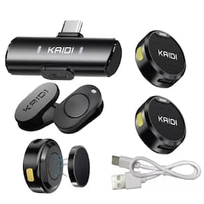 Microfone lapela sem fio com conexão USB-C, captação de áudio 360 graus, baixa latência (inferior a 50ms), alcance de até 25m, redução de ruído, bateria interna com duração de até 5 horas, compatível com smartphones e tablets Android e iOS com porta USB-C. Permite carregar o dispositivo enquanto em uso.Vendido por Flash Company e entregue por Extra