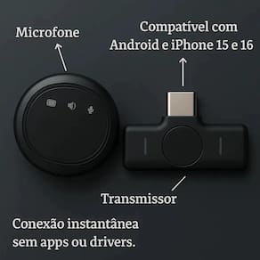 Microfone Lapela Sem Fio Duplo Tipo C Anti Ruído De Ia