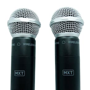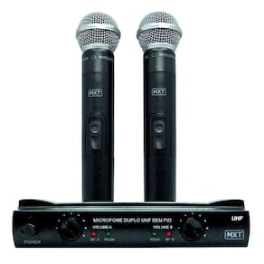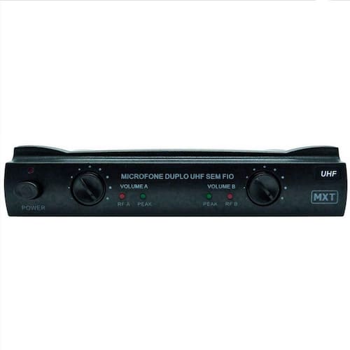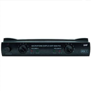 Microfone Mxt Sem Fio Duplo Uhf302 Maleta Freq... Descricao Informacoes do ProdutoDesign moderno e tecnologia inovadoraSistema sem fio com 2 microfones ideal para uso todos os eventos: Karaoke, gravacao fonte de som e amplificador, concertos vocais, live-performances, conferencias, musical e opera, igreja, escola, salao, familia, festa, etcInformacoes TecnicasReceptor R-302Frequencia: 614~806MHzEstabilidade de Frequencia: RF:-100dBmImagem de Rejeicao Espelhada: 45dBSinal/Ruido: 95 dBDistorcao: de Saida de Audio: 1V (10K)Alimentacao: DC12V 500MAMicrofones de Mao UHF-302Frequencia 1: / 690.3MHzFrequencia 2:/ / 694.8MHzFrequencia de Estabilidade: 10ppmSaida RF: Modulacao: FMDesvio Maximo: 75KHzEmissao Simulada: 40 dBAlimentacao: 3V (2 pilhas tamanho AA)Consumo de Corrente: 100mA Descricao Informacoes do ProdutoDesign moderno e tecnologia inovadoraSistema sem fio com 2 microfones ideal para uso todos os eventos: Karaoke, gravacao fonte de som e amplificador, concertos vocais, live-performances, conferencias, musical e opera, igreja, escola, salao, familia, festa, etcInformacoes TecnicasReceptor R-302Frequencia: 614~806MHzEstabilidade de Frequencia: RF:-100dBmImagem de Rejeicao Espelhada: 45dBSinal/Ruido: 95 dBDistorcao: de Saida de Audio: 1V (10K)Alimentacao: DC12V 500MAMicrofones de Mao UHF-302Frequencia 1: / 690.3MHzFrequencia 2:/ / 694.8MHzFrequencia de Estabilidade: 10ppmSaida RF: Modulacao: FMDesvio Maximo: 75KHzEmissao Simulada: 40 dBAlimentacao: 3V (2 pilhas tamanho AA)Consumo de Corrente: 100mA Marca: GRUPO MXT