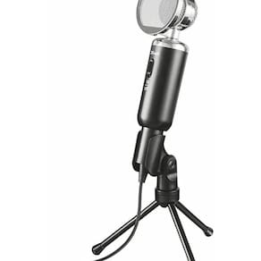 O microfone de mesa madell para pc e laptop 3.5mm com tripé e proteção de vento da trust é ideal para conversação, jogos, vlogging e até para cantar Possui proteção de vento removível melhorando a qualidade de voz, tripé com ângulo ajustável e botão silenciar. Possui cabo 3.5mm de 2.5m.
