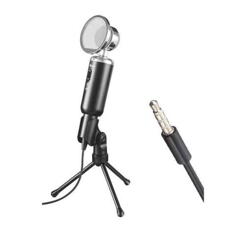 Microfone para pc com protecao contra vento conector p2 O microfone de mesa madell para pc e laptop 3.5mm com tripé e proteção de vento da trust é ideal para conversação, jogos, vlogging e até para cantar Possui proteção de vento removível melhorando a qualidade de voz, tripé com ângulo ajustável e botão silenciar. Possui cabo 3.5mm de 2.5m. Conectividade: Conexão com fio Comprimento do cabo cabo principal: 2.5 metros Tipo de conector: 3,5 mm Áudio: Impedância: 2200 ohm Sensibilidade: -45 db Nível sonora: 115 db Resposta de frequência: 50 hz - 16.000 hz Recursos: Redução de ruído Sensor de microfone: condensador Padrão de captação: omnidirecional Relação sinal-ruído: 58 db Monte: Tipo de suporte: tripé Compatibilidade: Tipos de dispositivos compatíveis: pc, notebook Plataformas de software compatíveis: windows, os, chrome os Sku : a113845-0o Homologação Anatel: 097082111116