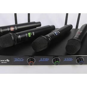 Microfone profissional quadruplo lyco uh164m uhf mult. Principais características 192 frequências uhf 4 canais de transmissão Diversity com 4 antenas booster bnc 4 saídas xlr balanceadas individuais Saídas mix xlr balanced e mix p10 Globo com anel anti-slip Padrão rack 19 em metal Bivolt automático Case para transporte conteúdo da embalagem 1x re-uh16 4x microfones de mão ht-07b 1x cabo p10/p10 1x fonte de energia bivolt 1x manual de instruções 1x case para transporte 2x adaptadores para rack 19 dimensões C.Embalagem cm : 48,5 l x33,3 a x13,8 p Especificações técnicas Sistema Faixa de operação: 100 metros sob condições típicas Resposta de frequência: 40hz-18khz Distorção do sistema: 0.5% Relação sinal/ruído.: 92db Sensibilidade: -96dbm s/r 12db Estabilidade de frequência: +15ppm Modo de modulação: dqpsk Modulação máxima: + 45khz Emissão de espúrios: -60dbc Faixa de portadora de rf: 620.00 - 679.20 mhz Conector: xlr macho 3 pinos 1/4 p10 Níveis máximos de saída: xlr: -10dbv 1/4: +5dbv Níveis nominais de saída: xlr: -30dbv 1/4: -8dbv Impedância de saída: 3,3k ohms Pinagem dos conectores xlr- 1:terra, 2:sinal+, 3:sinal1/4: ponta:sinal, carcaça:terra Dimensões: a: 4,5cm, l: 42cm, p:21cm Peso líquido: 1.855g Saída de alimentação: dc 12v 600ma Fonte de alimentação.Adaptador 100-240v50/60hz Transmissor Faixa de portadora de rf: 620.00 - 679.20 mhz Saída rf: 10mw max Dimensões: a: 25cm, d: 5cm Peso líquido: 210g Alimentação: 3v 2x pilhas aa 1.5v Duração da bateria: aprox. 8 horas Utilizando pilha com capacidade acima de 1600ma. Cápsula lc-10 Sensibilidade: -53 +3 db à 1khz 0db=1v/pa Impedância: 600 +15% à 1khz Padrão direcional: hipercardióide Resposta de frequência: 60hz -15khz Marca: Não Informado Ean: 7898613262327