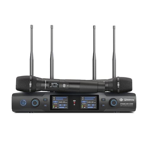 Microfone Waldman Sem Fio Duplo Wsl-2200/530 O Waldman WSL-2200 StageLink é um sistema de microfones sem fio desenvolvido para quem busca liberdade de movimento, praticidade e qualidade de áudio em apresentações , igrejas, palestras, eventos e . Equipado com duas transmissões independentes, o sistema oferece microfones com ótima resposta de frequência e estabilidade de sinal, garantindo clareza sonora e evitando interferências. O design robusto aliado à tecnologia StageLink proporciona conexão confiável e alcance eficiente, ideal para quem precisa de mobilidade no palco. Características principais: - Sistema sem fio duplo 2 microfones Com 4 antenas - Faixa de frequência: 530 - 590 Mhz - Tecnologia StageLink para maior estabilidade e qualidade de transmissão - Alta fidelidade sonora, ideal para voz falada ou cantada - Alcance de operação de até 100 metros dependendo do ambiente - com fácil ajuste de frequência e indicadores de status - Construção robusta e ergonômica dos microfones - Ideal para eventos, igrejas, escolas, bandas e locuções Conteúdo da Embalagem: - 2 Microfones sem fio Waldman WSL-2200 - 1 StageLink - Fonte de alimentação - 2 Pilhas - Acessórios de conexão - Maleta para transporte Homologação Anatel: 043182416293