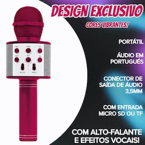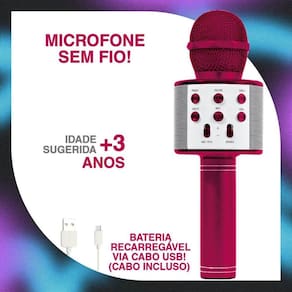 Microfone sem fio toca musica bluetooth karaokê portátilSe torne uma estrela da música com o novo microfone star voiceComcores vibrantes e design exclusivo, o microfone com alto-falante e efeitos vocais possui caixa de som embutida e conexão via bluetooth com celular ou tablet. Controle o volume, eco e outras funções do microfone através do mixer.Conecte o microfone ao bluetooth e cante sua música favorita com diferentes vozes se destaque no show e apresentações com este divertido microfone portátil sem fio.É hora do showCaracteristicas: - microfone sem fio;- com caixa de som embutida amplifica o som ;- conecta com celular ou tablet via bluetooth;- controle de mixer: ajuste de volume e de eco;- bateria recarregável via cabo usb;- bateria e cabo usb incluso. Contém:01 microfone;01 cabo usb.Obs: áudio em portugêsMaterial: metal e plástico;Tamanho do microfone: 23cm;Idade recomendada: +3 anos;Alimentação: 1 bateria 18650 li recarregável incluso cabo usb .Aviso: as cores podem variar do apresentado nas fotos. Imagens meramente ilustrativasCertificado inmetro: 000255/2022.Código ANATEL: 04034-18-11471
