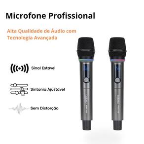 Eleve o nível das suas apresentações, palestras ou sessões de karaokê com o Kit Microfone Sem Fio Duplo Coibeu Profissional é projetado para entregar áudio de alta qualidade e liberdade de movimento, este sistema de microfone duplo com transmissão UHF garante uma conexão estável e livre de interferências. Com tecnologia cardioide que foca na sua voz e reduz ruídos de fundo, você terá uma performance clara e profissional. A luz RGB e a compatibilidade com P10 e P2 o tornam a escolha perfeita para qualquer evento ou sistema de áudio.