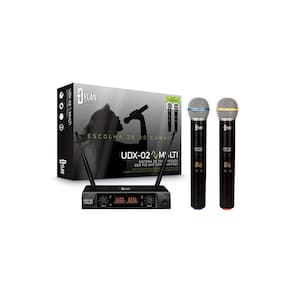 Itens inclusos: 2 Microfones uDX-02 de Mão 1 udx-02 1 Cabo P10/P10 1 Fonte de energia bivolt 1 Manual Ilustrado 1 case para transporte