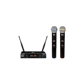 ESPECIFICAÇÕES: Sistema transmissão UHF faixa de 663,5 a 693,5 mhz homologado pela ANATEL Bastões com display digital e sintonizador de até 30 canais Chave on/off liga desliga Alimentados com pilhas 1,5v Sistema Faixa de operação: até 100 m sob condições típicas Resposta em frequência de áudio: 50 a 15.000 Hz, +3 dB Rejeição de imagem: 60 dB típico Rejeição a espúrios: 60 dB típico Distorção do sistema referente a +15 kHz de desvio modulação a 1 kHz : 0,1% de THD típico Relação sinal/ruído: 98 dB Sensibilidade: -109 dB para 12 dB SINAD típico Faixa de temperatura de operação: -18 C a 57 C. Nota: As características da bateria podem limitar esta faixa; Vida da bateria: 10 horas com 2 pilhas alcalinas AA Transmissor de mão Conector: XLR macho 3 pino P-10 Configurações de saída: Balanceada ativamente; Fonte de Alimentação: Adaptador 100V ou 220V com plug Fêmea 2,1mm Proteção contra 48V: Sim.